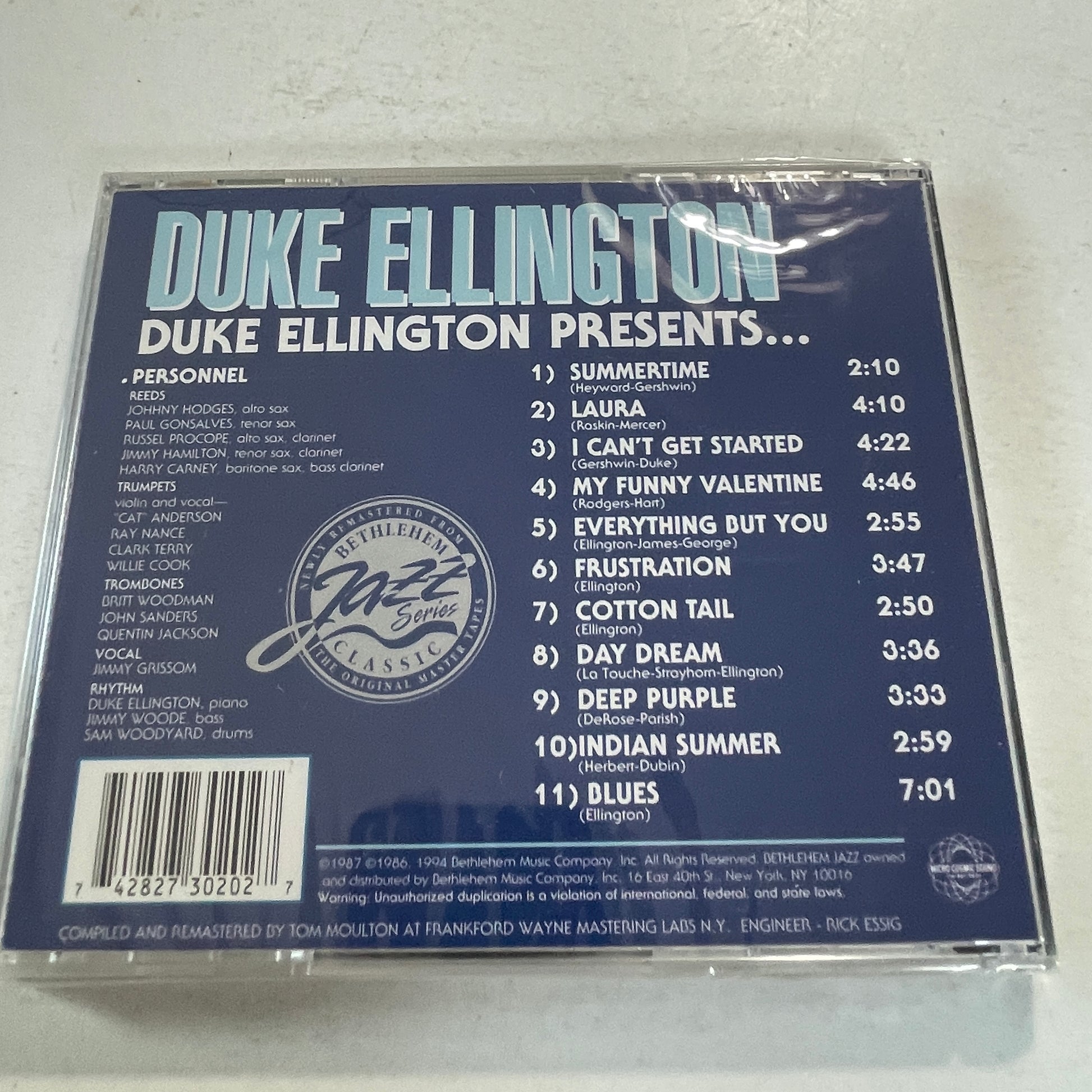 Tracklist: 1. Summertime, 2. Laura, 3. I Can't Get Started, 4. My Funny Valentine, 5. Everything But You, 6. Frustration, 7. Cotton Tail, 8. Day Dream, 9. Deep Purple, 10. Indian Summer, 11. Blues