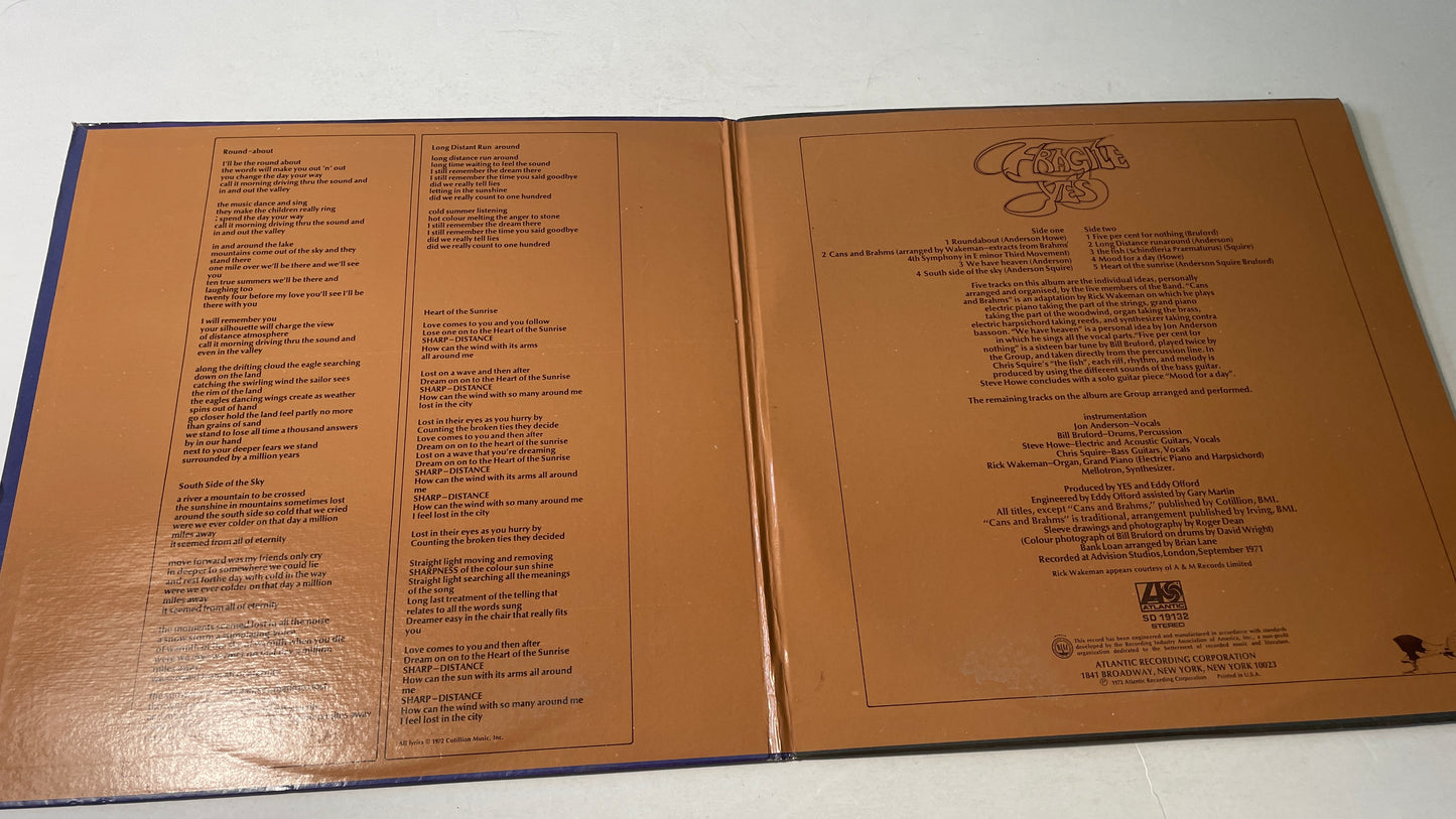 Tracklist: A1. Roundabout, A2. Cans And Brahms (Extracts From Brahms' 4th Symphony In E Minor Third Movement), A3. We Have Heaven, A4. South Side Of The Sky, B1. Five Per Cent For Nothing, B2. Long Distance Runaround, B3. The Fish (Schindleria Praematurus), B4. Mood For A Day, B5. Heart Of The Sunrise